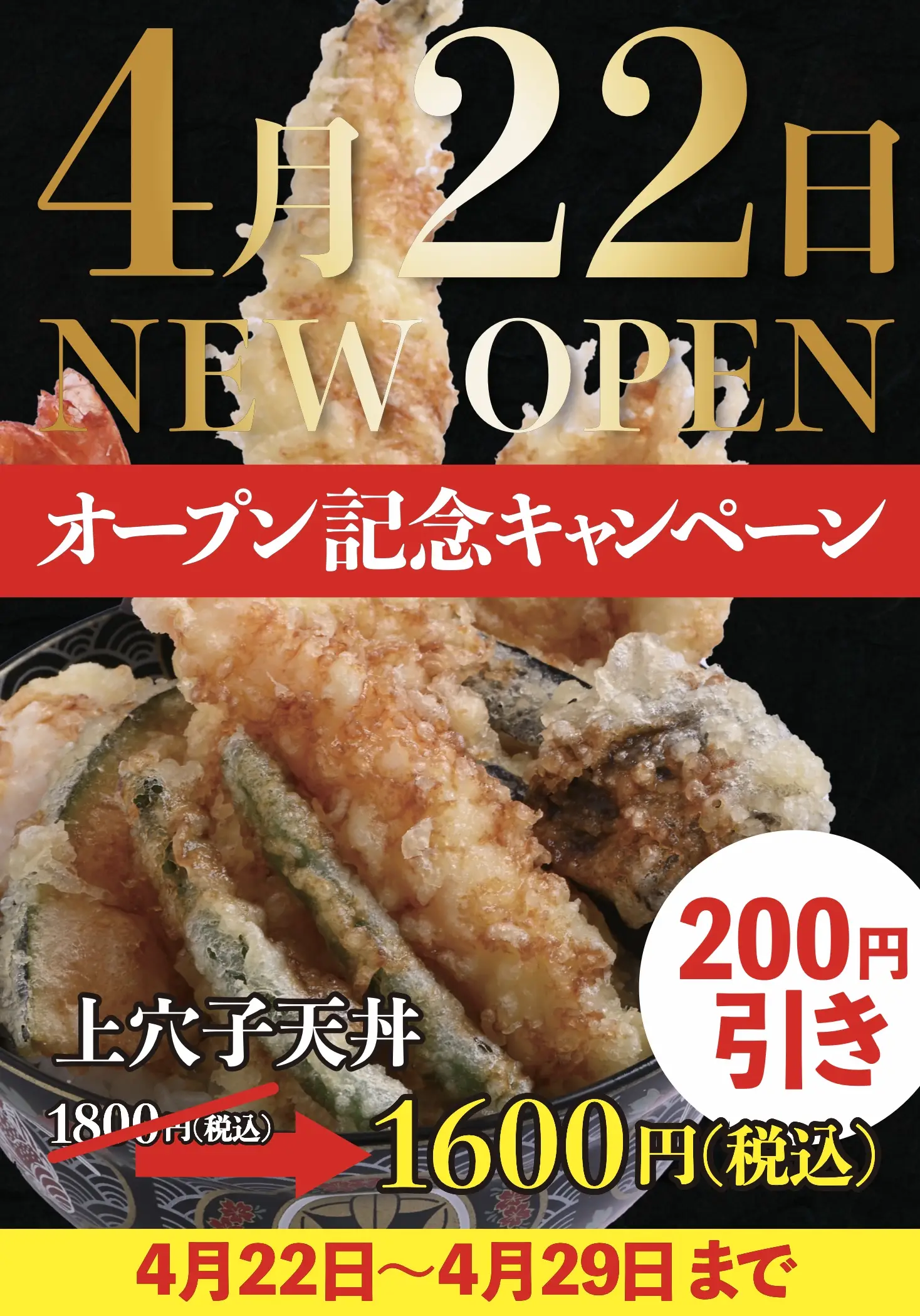 4月22日(水)、天丼専門銀座いつき 三井アウトレットパーク札幌北広島店がオープンするにあたり